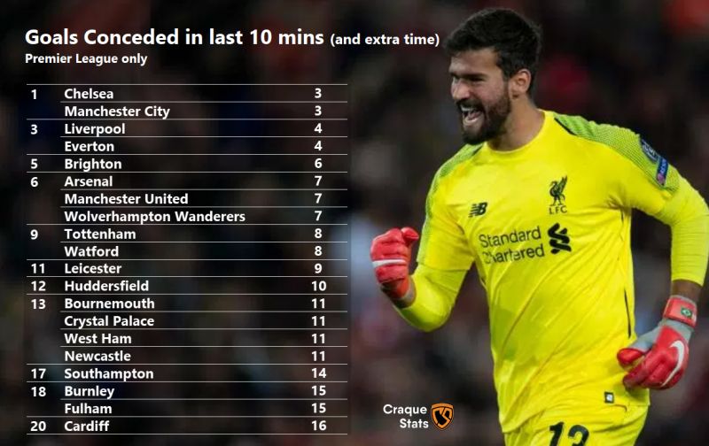 Table of Premier League teams ranked in order of goals conceded from the 80th minute onwards. Click to expand.