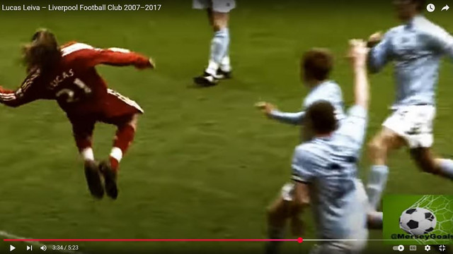 lol: What a terribly attempted and executed overhead scissor kick. The two legs should separate. That is the proper form. He really was limited, Lucas Leiva.