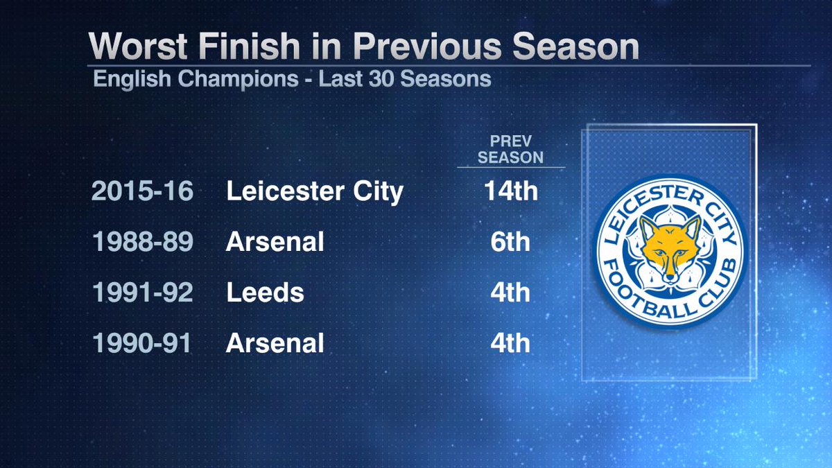 The biggest surprise ever in football history. Very well deserved. Ranieri finally won his big title.