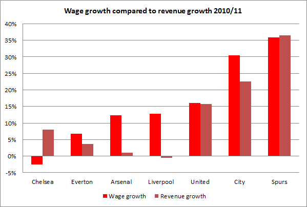 Manchester City rose five places to seventh after their revenues increased by 51% from the previous season.